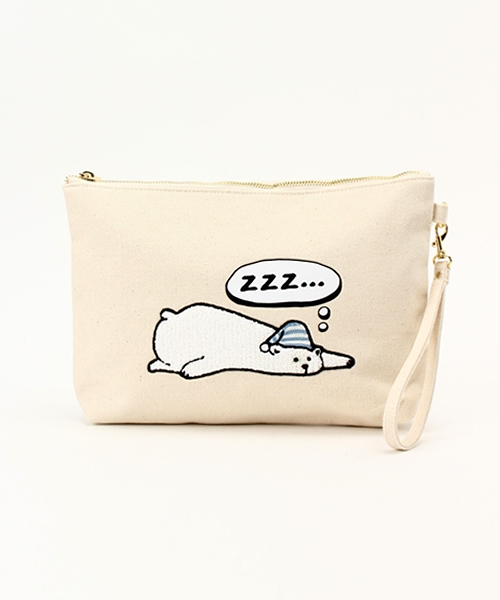 賑やかな3匹がサガラ刺繍でクラッチに♪色展開でデニムや裏毛など素材も違い、迷ってしまいます♪