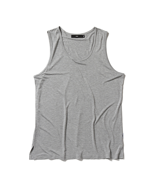 レイヤードに最適なアイテムです。 肌触りがよく、汗ばむ時期におすすめのレーヨンを使用したアイテムです。やや着丈が長い作りになっています。また、レイヤードした際の見え方を意識し、スソのサイドの部分にスリットをほどこしたのも特徴です。