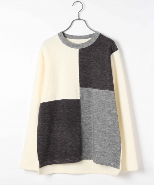 ボディ前面を大胆に切り替えたデザインのカットソーです。 レーヨン混の柔らかな素材感が特徴で、着用によるストレスを感じることはありません。 1枚でもインパクト大ですが、インナーとして使っても存在感を放ちます。 春先の主役として大活躍する、オススメのアイテムに仕上がっています。 ※撮影に使用しているインナー・小物は付属しません。