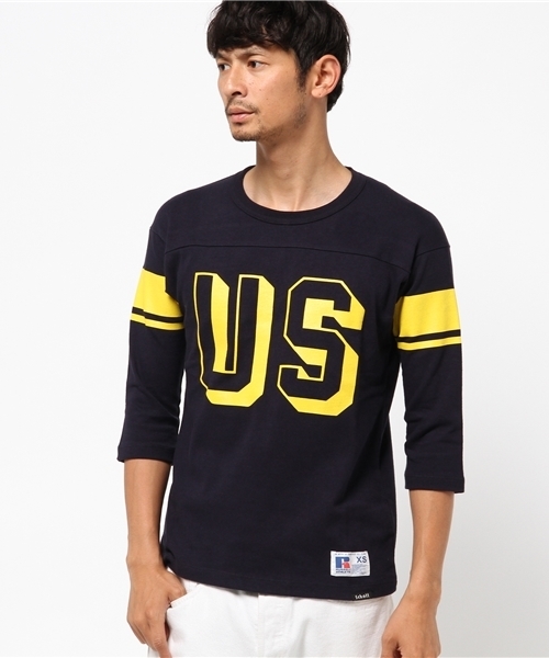 【アメカジの王道!フットボールT】 スウェットメーカーとして名高いラッセルに依頼して製作した、フットボールTシャツになります。 老舗のスポーツウェアメーカーだけに目の詰まったコットン。 古着にもありそうなアメリカ臭いデザインがアメカジ感を一層引き立てます。 【RUSSELL ATHLETIC(ラッセル・アスレティック)】 アメリカを代表する老舗アスレチックウェアブランド。 1902年、アラバマ州アレキサンダー・シティにてベンジャミン・ラッセル氏によって創立された。 1938年にはフットボールや野球、バスケットボールのスポーツユニフォームの生産を開始し、1960年頃には全米No.1のスウェットメーカーに成長を遂げる。