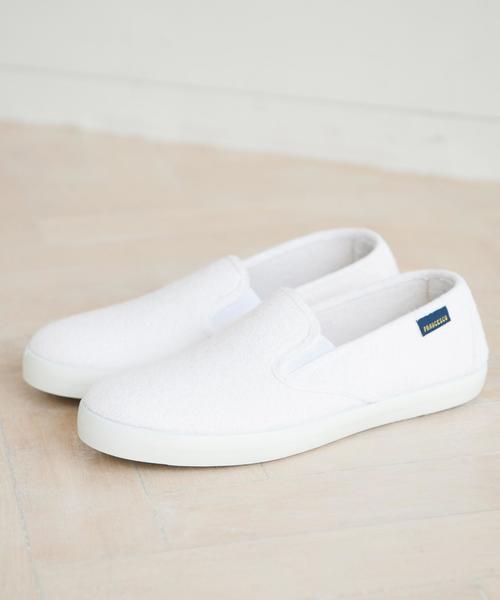 ---------- WEB限定販売アイテム---------- グリーンレーベル リラクシングの店頭では販売しない、スペシャルなアイテム 『FRANCESCO(フランチェスコ)』 × グリーンレーベル リラクシング別注のスリッポンスニーカーが季節感のあるパイル素材を使用して登場! スペイン エルチェにて1974年にサンダル生産の工場として創業したメーカー『FRANCESCO(フランチェスコ)』。グッドクオリティーながらロープライスを実現したこだわりのメーカーです。 今回はアッパーにパイル生地を使用し、春夏感のある爽やかなデザインでオーダー。 中敷は柔らかく仕上げたのもポイントのひとつです。 ショートパンツや半袖アイテムを使用したスタイリングにラフにプラスするだけでもサマになるアイテムです。 ※撮影の状況により多少色味が異なる場合がございます。 WEB限定商品の為、店舗での取り扱いはございません。予めご了承下さい。 ~セール期間中のグリーンレーベル リラクシング各店への在庫のお問い合わせに関して~ セール期間中、セール品の在庫の有無に関して店舗ではお答えできない場合がございます。 また、セール期間中の店舗でのセール品のお取り置きはお受けいたしておりません。予めご了承下さい。 品番: 3231-499-1295