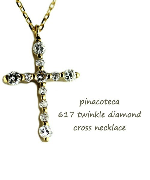 「 Twinkle Diamond Cross 」 0.075カラット(11石)のダイアモンドが眩いばかりに輝きます。 ダイアがよく光るように考えられた留め方の、ダイヤモンド クロス ネックレスです。 贅沢な輝きとアクセントになる大きさのクロスは、デコルテに華やかさとエレガントさを際立たせてくれます。 18金イエローゴールド製