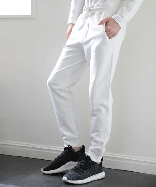 ドライタッチのスウェットの素材感が特徴! 使い勝手の良いジョガーパンツが登場 昨年より継続で人気のジョガータイプのスウェットパンツ。 すっきりとしたシルエットに加え、テーパードで仕上げた大人仕様の1本。 綿100%ならではのしっかりとした着心地はもちろん、 バックポケット部分にボタンを施すなど、細部にも拘りました。 カジュアルなシャツスタイルから、ジャケットスタイルの外しなど、 ロングシーズンで幅広いコーディネイトにて重宝するアイテムに仕上がりました。