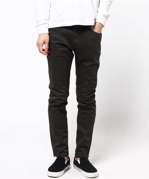テーパードが効いたきれいなシルエットです 光沢感のある生地が特徴のサテンを使用したパンツです。通常のコットンパンツに比べ上品な雰囲気があり、スニーカーだけでなくレザーシューズとの相性も抜群。スッキリとしたシルエットに仕上げておりますが、着用感を損なわないようストレッチ性を持たせています。