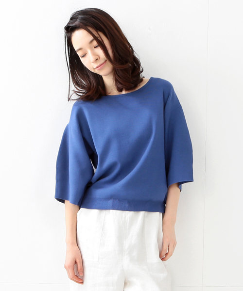 バルーン袖でグッと今年らしく☆ 立体的にバルーンに編みたてたボリューム袖が着こなしのアクセントに。あえて身頃はコンパクトに仕上げ、シルエットに拘りました。 ハイウエストボトムにタックインしても、アウトでもバランス良く着こなせる一枚。ニットなので、カジュアル過ぎず、シックにトレンドを取り入れて。