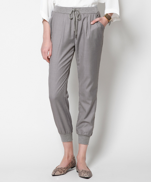 少し薄手のスーツ生地を使用したキレイめジョッパーズパンツ。 ウエストはゴムと紐で調節が可能なので着心地がよく着脱も楽々。 ウエストと裾のリブがカジュアルだけど、生地感が程良くラフさを抑えて、大人なスタイルに! ゆったりな着用感でもスラッと美脚に見えるのがポイント。 フロント&バックにはポケット付きで機能性も抜群! 着回ししたくなるデザイン性と着心地の良さがおすすめのボトムスです。