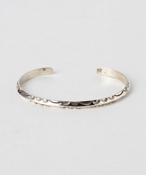 細幅の作りに繊細な柄の刻印が上品さを薫らせるバングルです。光沢感も美しく、手元を大人らしくハイセンスに飾ります。七分袖や半袖を着る機会が増える春夏のワンポイントとして最適です。トレンドのエスニックなコーディネートにもよく似合います。着脱がしやすいC型のフォルムです。 <Ray Adakai> シルバーワークに関してスタンプやパーツに至るまで手作りに拘っている、ナバホ族を代表するインディアンジュエリーアーティスト。持ち前のハンマーワークを生かしたコンチョベルトやシルバーの小物入れ、ブレス、ベンダント等多岐にわたるアイテムを作り続け、ギャロップセレモニア等でブルーリボン賞など数々の表彰を受けている。 店舗にてお問い合わせの際は、 全国のBEAUTY&YOUTH 各店舗まで下記の品番をお申し付け下さい。 品名:R/A Triangle BRAC 16SS 品番:1433-452-4668