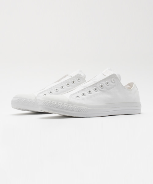 究極にシンプルなスニーカー 完成されたデザインとコーディネートの幅の広さから、長年にわたり性別、年齢問わず多くの方から愛されているスニーカーが“スリッポン”でアップデイト。 アッパー部分は紐を抜いただけのシンプルなデザインで、一見スリッポンとはわからない仕様。ヒールパッチまでワントーンで仕上げ、とことんシンプルを追求した一足。 CONVERSE / コンバース マーキス・M・コンバースが設立したコンバース・ラバー・シュー・カンパニーが起源。コンバースの代表作である“オールスター”は1917年の誕生以来、そのスタイルは現在もほとんど変わることなく生産され続けられています。また、その他にもジャックパーセルやプロレザーなど長年愛され続け、スニーカー史に名を残す名作が揃っています。