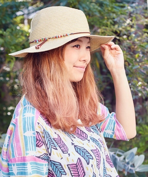 トレンドのつば広ハット。エスニックビーズがスパイスに★お洒落コーデにプラスワン!※こちらの商品は、職人による手作りとなります。その為、形や色など若干異なる場合がございます。あらかじめご了承ください。Amina Collection Co.,LTD.