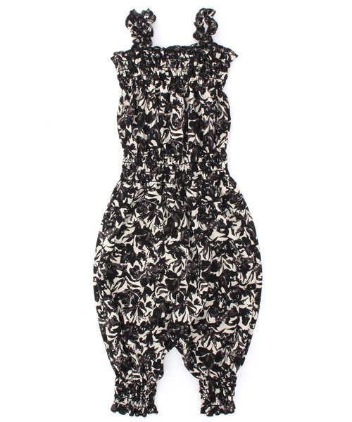 Omekashi(オメカシ) Omekashi Baby 大人顔負けのラインが魅力的なオールインワンは、思わずお揃いで着たくなるとっても可愛いデザイン。胸もと、ウエスト、足首はシャーリングゴムでほどよくフィットし、ゆったりとしながらもすっきりと着こなせます。一枚で着たり重ね着したりとロングシーズン着回せる嬉しい一着です。