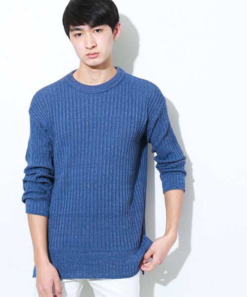 『あの大ヒットニットが春夏バージョンで登場』 秋冬シーズン大好評だったニットを素材を春夏仕様に変更し登場。 【Fabric】 軽くソフトな弾力を持ったコットンアクリルを採用。 “ロンフレッシュ”と呼ばれる加工を施し抗菌防臭作用を持った加工糸を使用し、快適な着用感に加え気になる匂いや汚れも軽減してくれます。 【Design】 やや長めの着丈でリラックスしたシルエット。 リブ編みがインパクトのある表情を演出してくれます。 秋冬のものと比べ、首周り、裾、袖部分の編地を変更し更にデザインポイントをプラス。 サイドの裾はスリットにしてトレンドのディティール。 肩はドロップショルダーで快適な着用感とこなれた雰囲気を与えてくれます。 1枚でも差が出るこれからの季節に嬉しいアイテムです。
