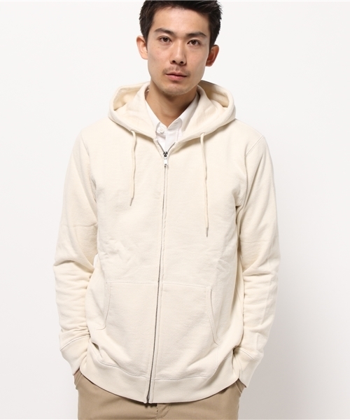 スウェット素材よりも薄手で使いやすいインレイ素材のジップパーカーです。1枚ではもちろん重ね着にも適しているのでコーディネートの幅が広く、シーズンをまたいでの使用ができます。厚手のパーカーとは別に、春に向けてのパーカーとして定番として揃えておきたい。
