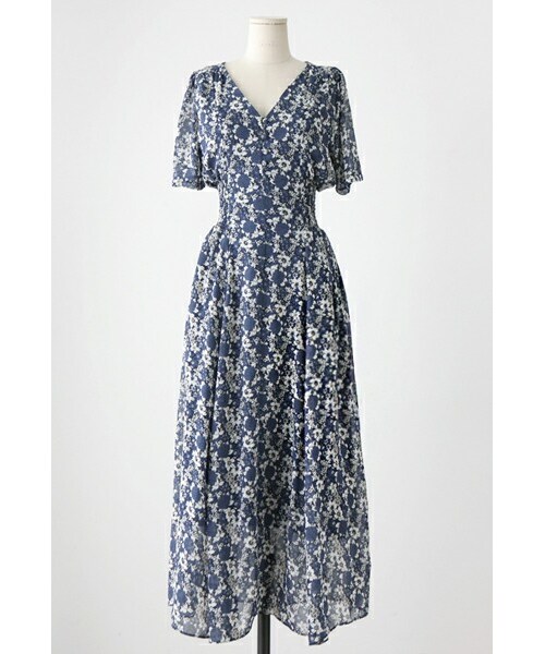 ロマンティックな雰囲気漂う ロングワンピースをご紹介いたします。 Vネックで首元スッキリ。 鎖骨をキレイにみせてくれるワンピースです。 ブルーとホワイトのフラワーパターンが素敵! フェミニンなムード高まるアイテムです。 ウエストはシャーリングがきいているので、 スリムに…スタイル良く見せてくれますよ♪ ◆COLOR : ブルー ◆SIZE : FREE ◆モデル着用SIZE : ブルー/FREE