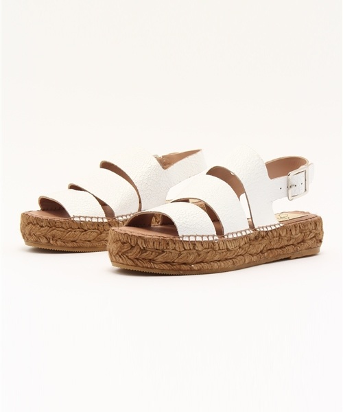 今シーズンも絶対欲しいプラットフォームサンダルです。キラキラのシルバー色は派手な感じですが履いてみると綺麗です。かなりの厚底ですが、つま先とかかとが同じ高さなので長時間履いていても疲れませんし、かかとのストラップは太くなっているので痛くなることはありません。春先は靴下と合わせて、そして夏は素足で履いてくださいね。