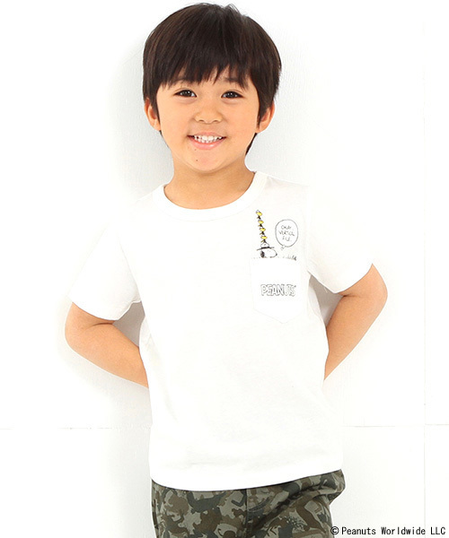 大人気のスヌーピーシリーズ16SS新作登場です★ 胸ポケットからスヌーピーがのぞいている遊び心ある1枚。大人も欲しくなるようなシンプルさと、さりげないワンポイントデザインをあえてキッズサイズに落とし込むことで新鮮な印象に。 オールシーズン活躍してくれる、柔らかいコットン100%で仕上げたTシャツは着回しにも重宝します。クリーンな印象のホワイトとサックスブルーの2色をご用意。プレゼントにも喜ばれること間違いなしのアイテムです。 ●80、90サイズのみ肩にスナップボタンが付いています。