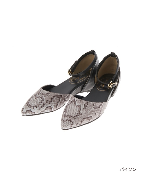 バイカラーがポイントのパンプス。インヒールが入っているので足が長く見えます。ストラップが足首を固定するので歩きやすさも◎。