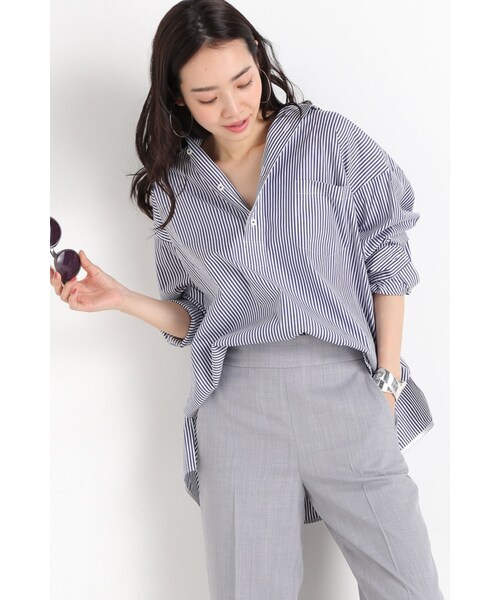 シャツの中で体が泳ぐようなビッグシルエットが可愛い。すっぽりとかぶるプルオーバータイプのシャツは、胸元を大きく開けて大胆に着ていただくと、今年らしいシルエットになります。きれいめボトムとの相性もよいので、デイリーで着回しができそう。モデルサイズ:身長:165cm バスト:80cm ウェスト:58cm ヒップ:85cm 着用サイズ:フリー