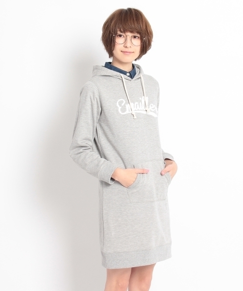 THE EMPORIUM定番の裏毛素材を使ったフード付ワンピース。胸元にはさがら刺繍が入っていて、温かみのあるデザインもポイント! 丸みのあるスペルの並びも可愛いポイントに。ワンピースとしてはもちろん、スキニー合わせでカジュアルな着こなしもおすすめです。モデル情報:身長166cm B81W57H84 着用サイズ:38(M)店舗へのお問い合わせ商品番号:567-58008主に春に着用いただける商品です。サイズスペック●製品寸法:38(M):着丈83 B100 袖丈57 肩幅36 W96 H9640(L):着丈85 B105 袖丈59 肩幅37 W99 H99