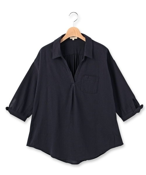 ニュアンス感のあるこなれたシルエットが魅力のスキッパーシャツ。デコルテをきれいに見せてくれるVの開きと袖口の結びリボンがポイントです。後ろ長めのヘムラインもトレンドディテールです。モデル情報:身長163cm B78 W59 H85 着用サイズ:02(M)店舗へのお問い合わせ商品番号:511-88005主に春に着用いただける商品です。サイズスペック●製品寸法:01(S):着丈70 B104 袖丈29 肩幅5402(M):着丈72 B110 袖丈31 肩幅5603(L):着丈74 B116 袖丈34 肩幅56