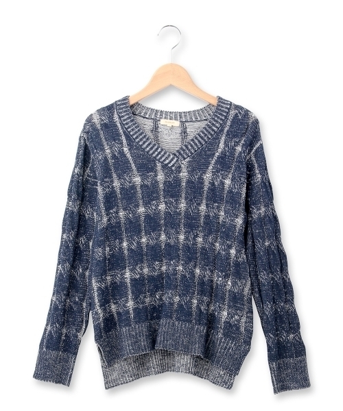 縄編みが特徴的なVネックニットです。着丈に前後差を付けて裾にスリットの入ったトレンドのデザイン。Vネックなので衿付きのシャツやブラウスとの相性がいい一枚です。モデル情報:身長163cm B78 W59 H85 着用サイズ:02(M)店舗へのお問い合わせ商品番号:511-18008主に春に着用いただける商品です。サイズスペック●製品寸法:02(M):着丈53 B100 袖丈52 肩幅3903(L):着丈55 B104 袖丈53 肩幅40
