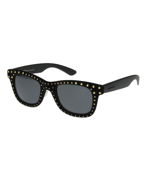 このサングラスはウェリントン形状なので、スマートな印象と視野の広さを両立します。プラスティック素材です。フロントにはベルベットタッチ加工が施されています。