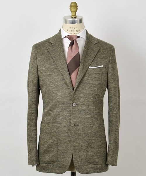 『ジャージージャケットに速乾性の高いリネンを使用したモデルが登場!』 この5年ほどで、ビジネスカジュアルの定番となったジャージジャケット。 こちらはリネンのメランジ糸を使用。リネンは2つの高級リネン、フレンチリネンとベルギーリネンで、軽く、光沢とドレープ感が特徴です。 そして高級なリネンを単糸でなく、双糸にする事でリネンのハリ感をあえて取り、ぬめりのある質感にしています。リネンとは思えない柔らかさです。 さらに色に深みを出す為に黒の糸を加えて、ダークなメランジを表現しています。落ち着いたビジネス然としたコーディネートをお楽しみいただけます。 またフロート天竺というヨコ伸びを防ぐ編み方をしており、ジャージーに起きやすいダレ(伸びて形が崩れてしまう)を軽減しています。 ●3つボタン段返り。 ●センターベント。 ●半裏仕上げ。 ●袖ボタン: 重ねの4つボタン(切羽無し)。 ●胸ポケット: バルカポケット, 腰ポケット: パッチポケット。 ●春夏に最適の素材です。 ※仕付け糸はお取り頂いてからご使用ください。 ※商品が届きましたらすぐに配送箱からお出しください。長時間そのままにしますとしわの原因となります。