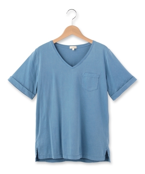 軽やかなコットン素材を使用したVネックの半袖プルオーバー。さりげないポケット付きがアクセントに。伸縮性のある柔らかい生地で着心地抜群な1枚です。ボトムスを選ばず幅広く活用できるアイテム。モデル情報:身長164cm B78 W60 H84 着用サイズ:02(M)店舗へのお問い合わせ商品番号:511-18025主に夏に着用いただける商品です。サイズスペック●製品寸法:02(M):着丈63 B96 袖丈22 肩幅3603(L):着丈65 B98 袖丈22 肩幅37