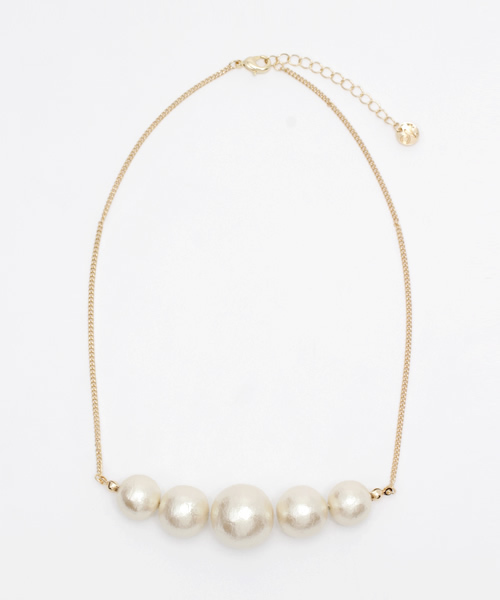 フロントに大小のコットンパールが美しく連なるネックレス!華奢なチェーンで、より女性らしさを引き出し、温もりあるコットンパールで愛らしい雰囲気を醸し出します。デイリーに使えるコットンパールで、カジュアルからパーティーシーンまで大活躍してくれます。