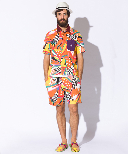 aldiesの手法は生地の「柄」、そして色の複雑な「組み合わせ」から生み出される。 何種類もの色/生地を複雑にレイヤードしていく手法はパッチワークのようでもあり、世界でも類を見ない。 ゛ぎりぎりの一線゛をためらうことなく自由に行き来するもの創りは確信的でまさにボーダーレス。 探してきたデットストックのテキスタイルをMIXしたジャンルレスなもの作りは、 アパレル業界だけでなく異業種からも注目されて来ている。 80年代のポップアートのような「奇抜さ」と、小さなパーツの色の組み合わせによる 「かわいさ」を兼ね備えた小物達は、みているとそのPOPな世界に引き込まれてしまう! そんなコレクションの数々はものが氾濫する現代において、新たに゛お気に入り゛に入れたくなる一点となるであろう。