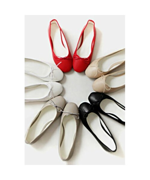 リボンがキュートな バレエシューズをご紹介いたします。 フラットなので、とても履き心地がよく、 普段使いにピッタリのアイテムです。 つま先のかわいらしいリボンが、 シンプルなシューズのポイントとなっています♪ ハッキリした色味のレッドやブラックも良いですが、 ホワイト、ベージュ、グレーなど春らしい色もオススメ★ ◆COLOR : ホワイト、ベージュ、レッド、ライトグレー、ブラック ◆SIZE : 22.5~25.0cm ◆モデル着用SIZE :ブラック/23.0cm