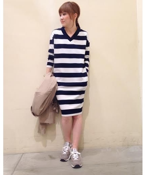 CIAOPANIC TYPY(チャオパニックティピー) Vネックが女性らしい1枚で様になるカットソーワンピース 素材は、レーヨン混の落ち感のある素材で、着心地も良い滑らかなタッチです。 ネックラインが程良い開きのVネックなので女性らしさもありながら、だらしなく見えず上品なイメージに。 透け感もなく、1枚でさらっと着ていただけます。 Gジャン+ワンピース+スニーカー