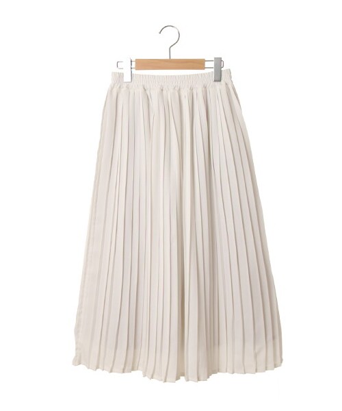 プリーツがたっぷりと施された贅沢なスカート。フレアなシルエットでコーディネートにフェミニンンな印象をプラス。しっかりとした裏地が付いているので、透け感も気にならずに履いていただく事が可能です。ウエストはゴムになっているので、トップスINのスタイルやスウェットやニットと合わせたコーディネートもお勧めです。