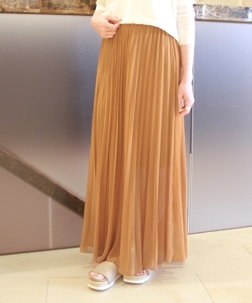 【2016S/S】 Spick & Span ◇ヘルシーなエアリーシルエットが叶う、アコーディオンプリーツスカート! 流れるようなアコーディオンプリーツがエレガントを感じさせるマキシスカート。 軽さのあるポリエステル素材を使用し、トレンドのフロアレングスでも重たくならないボリューム感を実現しました。 ひざ下は少し透け感がでるよう裏地を短く設定し、動きの出るディテールが春らしさを感じさせます。 スカートを主役にした旬のコーディネートが楽しめるアイテムです。 ※取り扱いについては、商品についている品質表示でご確認ください。 ※こちらの商品は、Spick & Spanでの取り扱いになります。 直接店舗へお問い合わせの際は Spick & Span店舗へお願い致します。 ※店頭及び屋外での撮影画像は、光の当たり具合で色味が違って見える場合があります。商品の色味は、スタジオ撮影の画像をご参照ください。 ぺチコート付き(ペチコートは本体から取り外し不可です。)