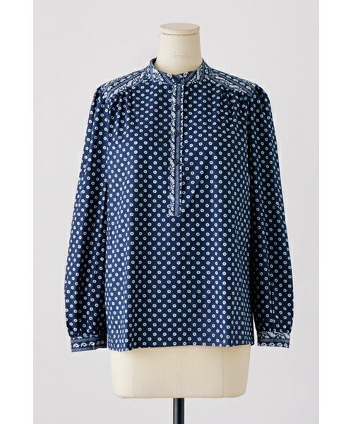 柄×柄がレトロ感漂う スタンドカラーシャツをご紹介いたします。 パーツによって柄を使いを変え 2通りの柄を使用することによってレトロな印象♪ 袖はパフスリーブになっているので 二の腕もすらっと見せてくれます☆ スタンドカラーで首元はすっきり! ベーシックな形ですが存在感のあるアイテムです。 ◆COLOR : ネイビー ◆SIZE : FREE ◆モデル着用SIZE : ネイビー/FREE
