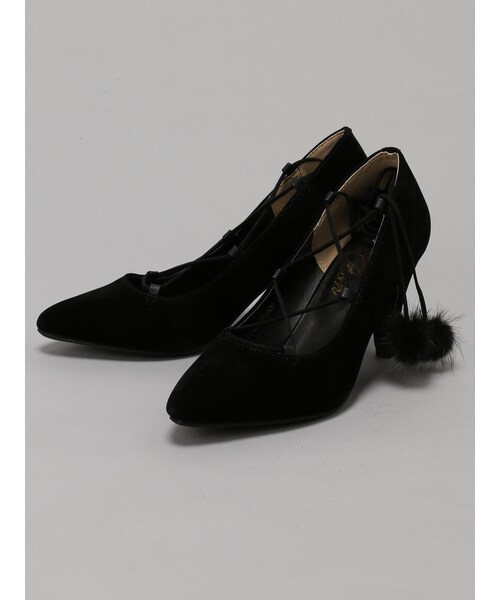 今季トレンドのレースアップパンプスは足元からガーリー気分を盛り上げてくれる1足。 リボン先にあしらったポンポンもラブリーなアクセント!ほどよい高さのヒールとスリムなシルエットで美脚効果も抜群です。フェイクスエードのマットな質感も上品なオトナ顔にシフト。 普段のコーディネートもプラスワンで愛らしい旬な着こなしに決まります。