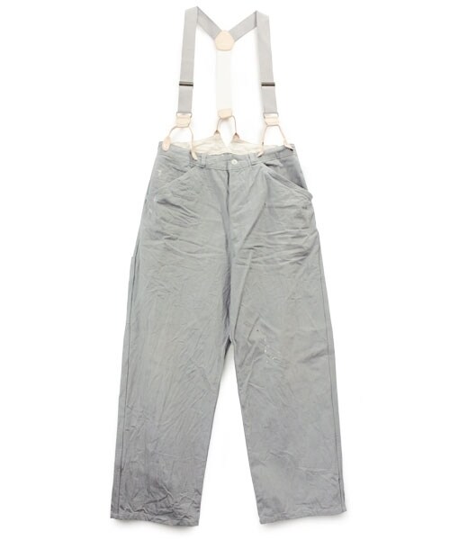 シンプルでデイリー使いにぴったりなカラーデニムパンツ。ワイドシルエットのカジュアルな印象の強いアイテムですが、スラックスのようなシルエットに仕上げているので、どこか品のある一枚に。取り外し可能なサスペンダーを付けて、また違った雰囲気をお楽しみいただけます。※この製品は、中古感やムラ感を表現する為、すべて手作業で仕上げており、商品一点一点異なった表情に仕上がっております。また、中古感を出すために意図的にダメージ(穴、キズ、破れ、糸切れ等)を施しています。予めご了承下さい。※アンティーク感を表現するために、しわや洗い感を出す特殊な加工を施しています。特性上、パーツごとに色合いやしわの風合いなどが多少異なります。予めご了承下さい。※その他お取り扱いに関しましては、商品に付属のアテンションタグをご確認の上、充分ご注意下さい。Model:身長 166 cm 着用サイズ:Mサイズ