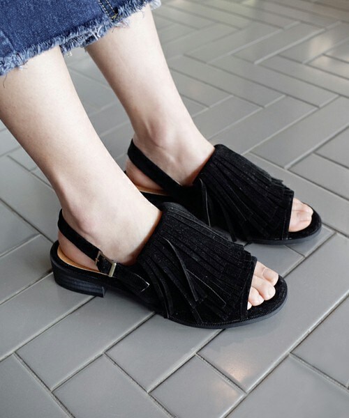 フリンジディテールでポイントを与えたスエード素材のサンダルです。 調節可能なバックストラップと低めのヒールで安定感があります。 スエード質感で高クオリティーになりました。 ※WEARに記載してある金額と、DHOLIC通販サイトに記載してある金額にシステム都合上、 稀に誤差が生じます。正しい金額はDHOLIC通販サイトに記載された金額です。