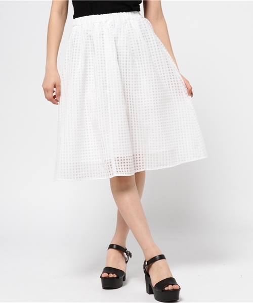 春の気分を感じられるシアーチェックのスカート。 うっすらと透けるチェック柄は、無地感覚で使えるさり気ない表情が魅力です。 あえてカジュアル&スポーティーなアイテムとコーディネートする着こなしもおすすめ。 裏地付きです。