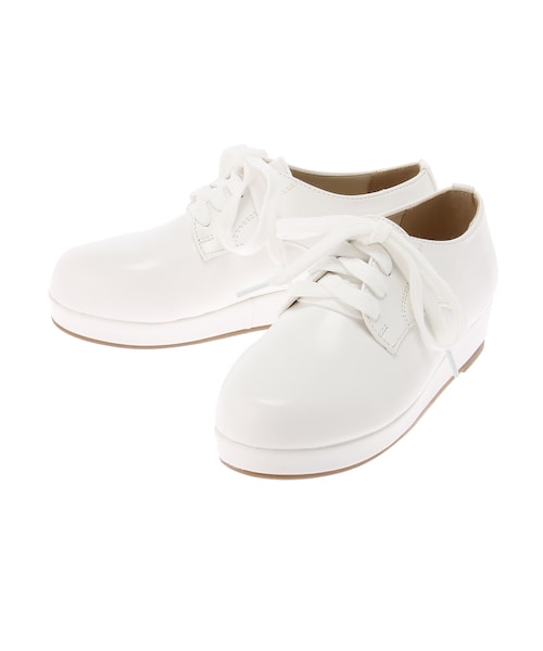 厚底のスニーカー風シューズです。カジュアルな雰囲気のキャンバスを使用しています。今や定番の厚底シューズは足長効果を期待できます。前・後の高低差が少ない厚底なので歩きやすいです。何にでも合わせやすいアイテムです。