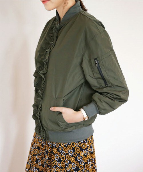 デイリールックをカジュアル+フェミニンに仕上げてくれるユニークディテールのMA-1です。 ボーイッシュな印象のあるMA-1にジッパーラインのフリルディテールで女性らしさを加えました。 ※WEARに記載してある金額と、DHOLIC通販サイトに記載してある金額にシステム都合上、 稀に誤差が生じます。正しい金額はDHOLIC通販サイトに記載された金額です。