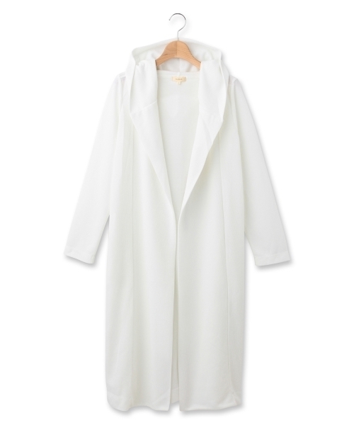 トレンドのサカリバ素材を使用したロングカーディガン。柔らかな伸縮性で着心地よく、カジュアルスタイルからちょっときれいめなフェミニンスタイルまで幅広く活躍します。フード付きでアクティブなポイントもプラス◎ モデル情報:身長168cm B76W59H84 着用サイズ:02(M) 店舗へのお問い合わせ商品番号:511-38015 主に春に着用いただける商品です。 サイズスペック●製品寸法: 02(M):着丈101 Bフリー 袖丈59 肩幅38 03(L):着丈102 Bフリー 袖丈60 肩幅39
