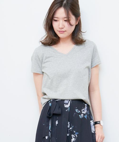 【1枚でも様になる絶妙Vネックが大人顔!ワンランク上の着心地!USAコットンTシャツをアップデート♪】 普通のコットンにくらべ、汗の吸収性が高くしなやかな肌触りUSAコットンで仕立てたVネックTシャツ。 インナーとしてはもちろん、1枚できても様になるシルエットが着回しの幅を広げてくれます。 使いやすいベーシックカラーはもちろん、春コーデにピッタリの差し色カラーもおすすめ。 ヘビロテ必須のアイテムだからこそ、気兼ねなく洗える丈夫さもうれしい特徴の1つです。