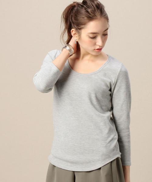 ポリエステルコットンを使用した柔らかくしなやかな風合いが魅力のワッフルロングスリーブカットソー。インナー使いはもちろん、タイト過ぎないシルエットは一枚着としても様になります。すっきりとしたネックラインが合わせるアイテムを選ばず、実用性と女性らしいニュアンスを兼ね備えた一枚。ワードローブの定番として是非。店舗にてお問い合わせの際は、全国のBEAUTY&YOUTH 各店舗まで下記の品番をお申し付け下さい。品名:BBC TC/WFL U/NECK 8SL 品番:1612-113-4006