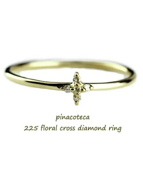 「 Floral Cross 」 5石のダイヤが輝く、クロスにもフラワーのようにも見える華奢ダイヤモンド リング 手元で柔らかく光るダイヤモンドがさり気なくアクセントになります。 大きすぎないクロス リングは、1本付けにも、重ね付けにも重宝する華奢リングです。 18金イエローゴールド製