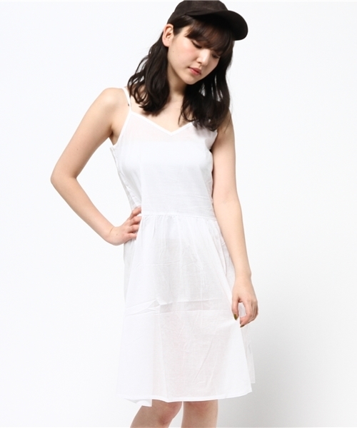 レイヤードスタイルに欠かせないロングキャミドレス。1枚持っていると何かと使えるので便利!