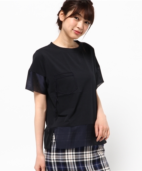 コーディネートに困らないグッドバランスのハイブリッドTシャツは、シルケット素材とオーガンジー素材を高い縫製技術で縫い合わせ、さらにニット糸を使ったポケット型刺繍を施すなど、日本の技術が詰まった1着。