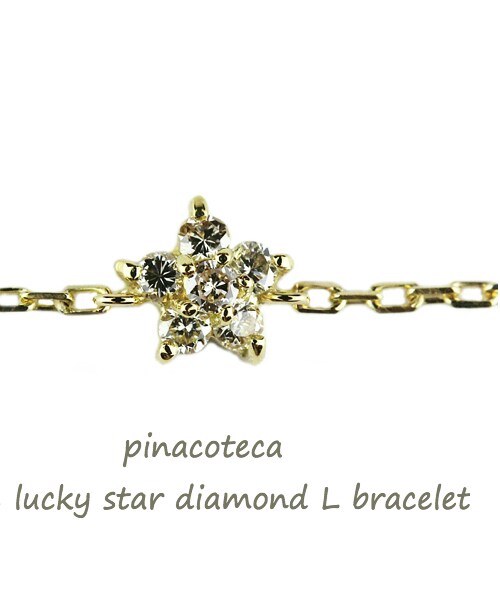 ラッキーが舞い込んできそうな ダイアがギュッと詰まったスター ブレスレットのLサイズ センターのダイヤは少し上に高くして バランスよく光るようにセッティングされています。 モチーフ自体は小さめながらもダイアがよく光り、 デイリー着けにもピッタリの星ブレスレットです。 一粒ダイヤ ブレスレットのようにも身に着けて頂けます。 18金イエローゴールド製