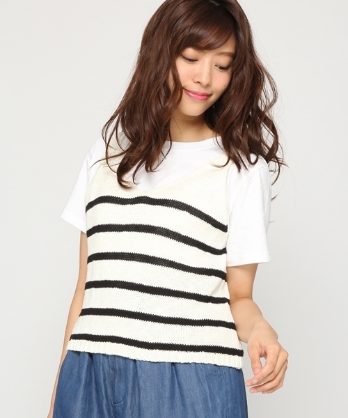 【ZOZO限定価格】 今季大人気のオーバーキャミにニット素材が登場!夏らしい綿アクリル素材で、Tシャツとも好相性♪程よくゆるさもあるので、リラックスムード漂うコーデが楽しめます。デニムのホワイトやブルーにも映えるアイテムです。シンプルなスタイリングのアクセントにもオススメ★ ※インナーに着ているTシャツはセットではありません。
