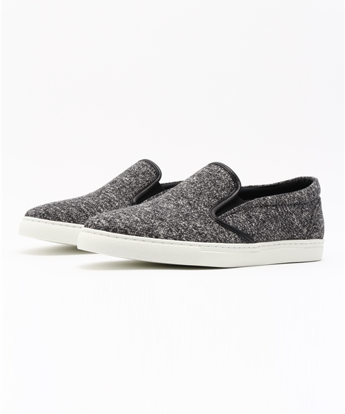 スウェット素材を使用したスリップオンスニーカーが登場!アメカジには欠かせない素材である杢スウェット生地をアッパーに使用したスリップオンスニーカー。 薄めのソールとシャープなトゥシルエットが、アメカジのみならずジャケットスタイルなどの外しアイテムとしても活躍できる。