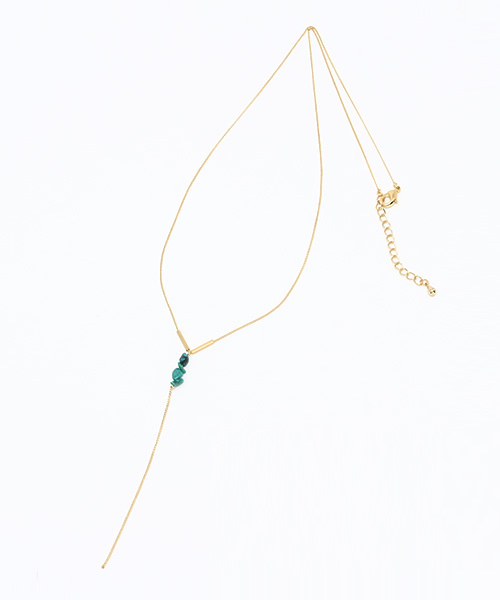 フロントでV字を演出するロングネックレス!V字でシャープさがより引き立ち、縦長シルエットを強調してくれます。真ん中に施されたパーツが、さりげなくシーズンルックにワンポイントを添えてくれます。